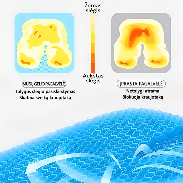💨 Pažangi gelio technologija – vėsinantis poveikis ir tolygus spaudimas, kad būtų patogu ilgai sėdėti.