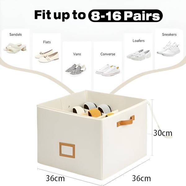 SHOVERA batų organizatorius sukurtas talpinti 8–16 porų batų, įskaitant basutes, šlepetes ir sportbačius, kompaktiško 36x36x30 cm dydžio. Sulankstomas dizainas užtikrina patogų laikymą, kai nenaudojamas, todėl puikiai tinka namams, bendrabučiams ir sezoninei avalynei.