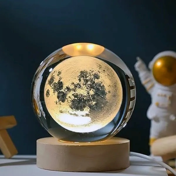 Šviečiantis 3D Krištolo Rutulys su Astronominiu Dizainu | LUMABALL