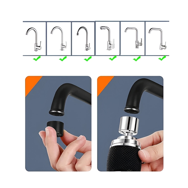 Nereikia jokio santechniko! Tiesiog nuimkite dabartinį aeratorių ir užsukite FAUCETI adapterį.