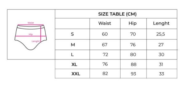 Kelnaitės tinka kiekvienai progai, jas galima dėvėti kasdien, į darbą, vakarėlį ar vestuves. Medžiaga yra minkšta, orui laidi ir draugiška odai. Kelnaitės gražiai apglėbs klubus, ištiesins pilvuką ir natūraliai pakels užpakaliuką. Nepaisant tamsumo, jos ištiesins odą ir joks celiulitas nebus matomas.