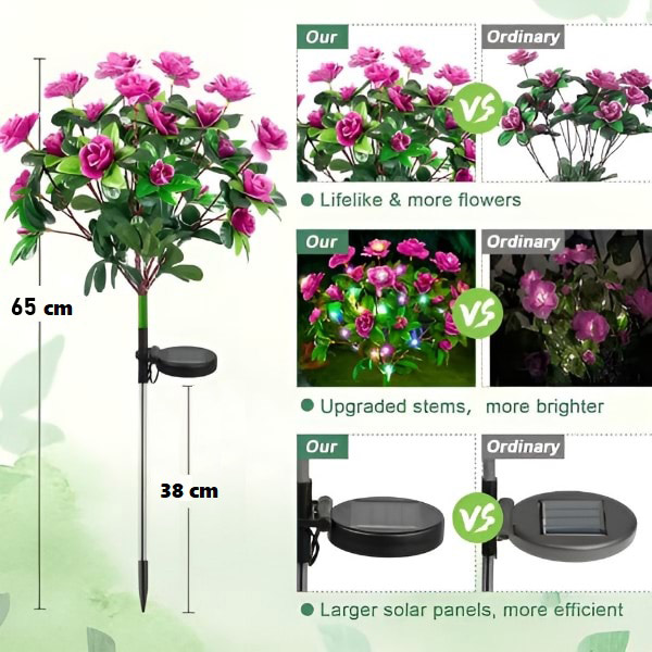 🌸 Paverskite savo kiemą su saulės energiją naudojančiais tikroviškais azalijos žiedais, kurie automatiškai įsižiebia sutemus.