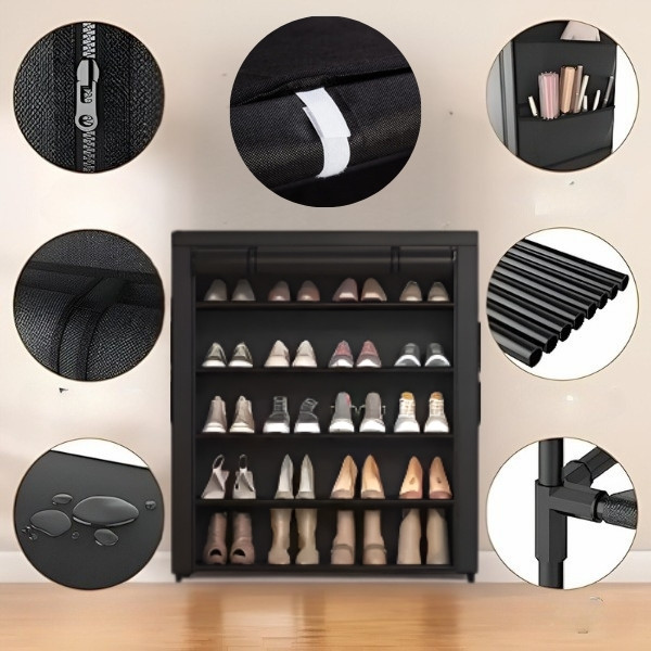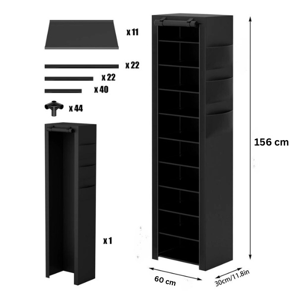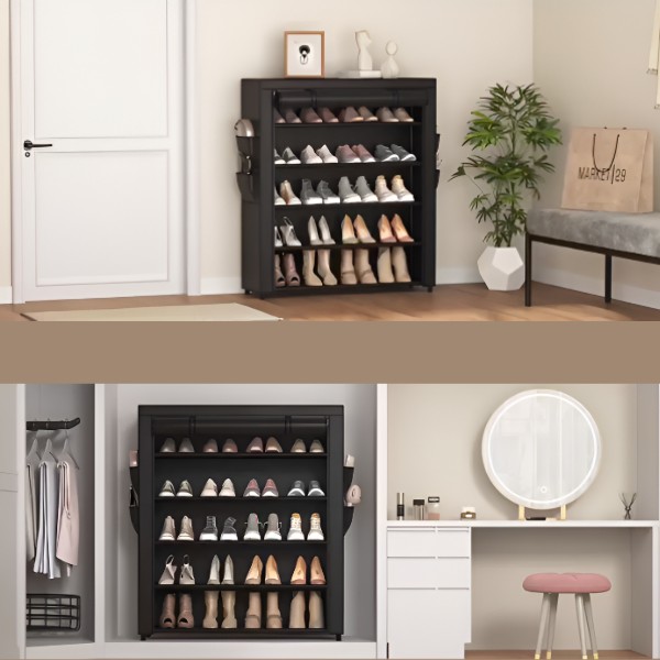 Įrengtas audinio uždangalas, atsparus dulkėms, su užtrauktuku. Ši batų lentyna užtikrina, kad jūsų batai išliktų švarūs, apsaugoti nuo dulkių ir purvo.