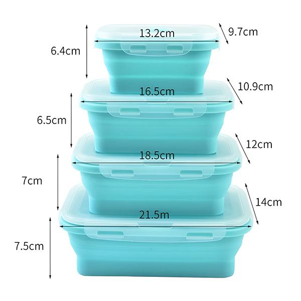 📦 Pakuotėje yra: 4x Sulankstomos silikoninės talpyklos (350 ml, 500 ml, 800 ml, 1200 ml)