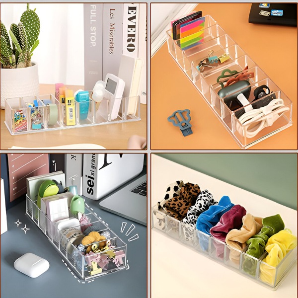 📦 Rinkinį sudaro 3 daiktų organizatoriai, kiekviename jų yra 5 reguliuojami skyriai.
